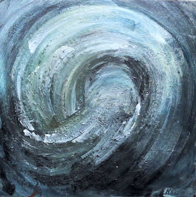 The intensity of overcoming one of humanity’s biggest enemies: fear of facing the unknown of your inner self is what this painting represents. Each wave is a strong emotion, a force of nature. The decision you make in the moment shows you what you truly are.